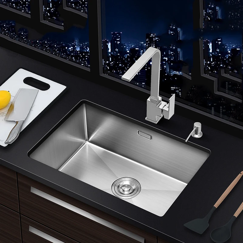 Name: Fregadero de cocina de acero inoxidable, cuenco individual debajo de la montura, borde estrecho cepillado hecho a mano con accesorios de drenaje para el hogar, 304